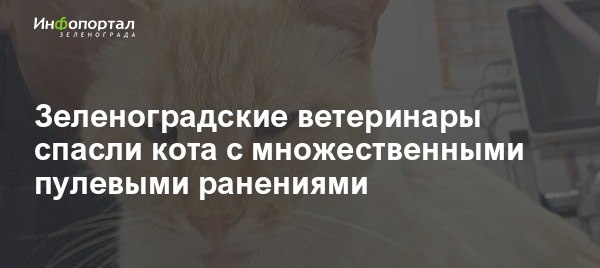 В зеленоградской ветклинике спасли кота с множественными пулевыми ранениями. У животного был в 24 местах пробит кишечник и в двух — селезенка, также пули попали в грудную клетку и мышцы бедра. Подробности — в публикации Инфопортала подписаться / обсудить в чате