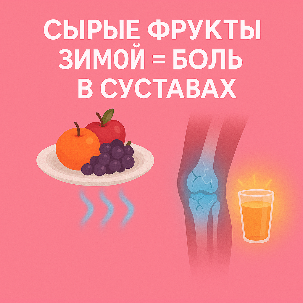 «Фрукты же полезные?» — подумала я. Но когда он объяснил механизм, я поняла, почему у меня зимой каждый год болели колени, ныли голени и тянуло под чашечками. И самое удивительное — после того, как я убрала этот один продукт, суставы перестали «скрипеть» даже в минус 15. Сырые фрукты. Любые. Даже те, которые считаются «зимними»: Звучит как кощунство, но продолжение — бомба. Диетолог объяснил так, что стало всё понятно. Зимой тело работает на обогрев.