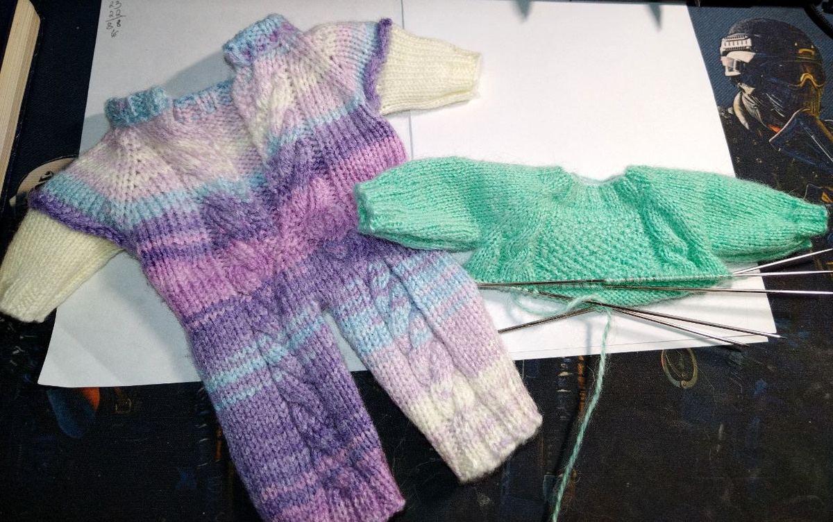 А я утепляю любимую дочкину куклу.