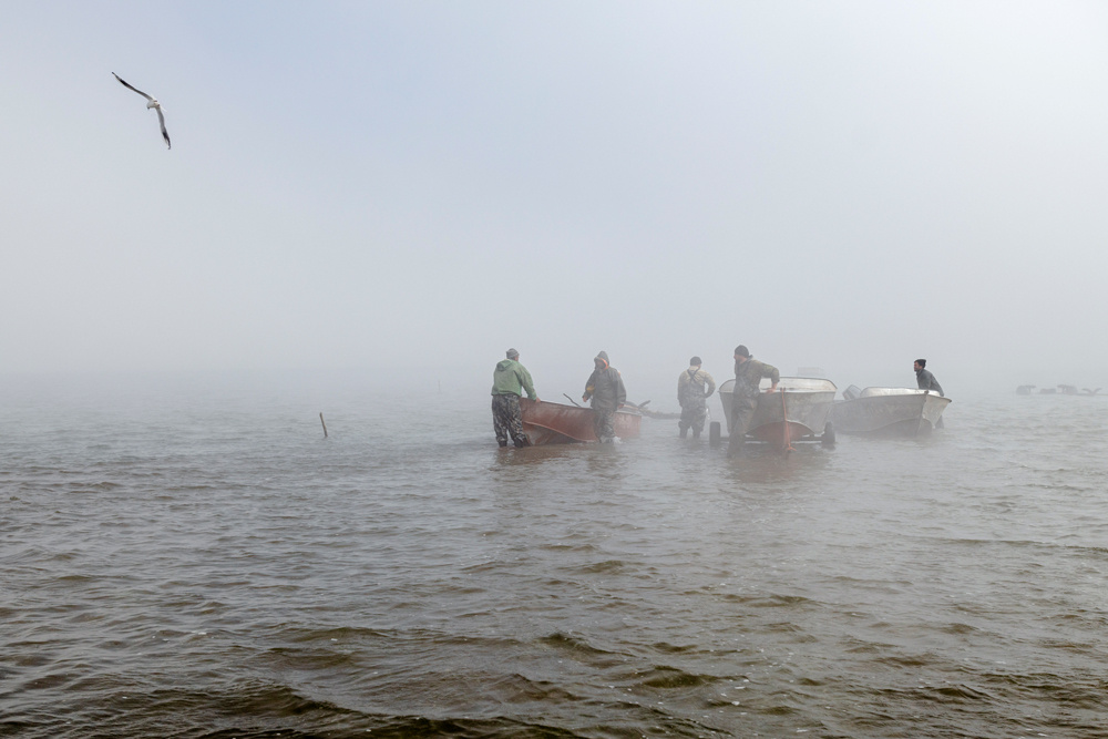 Ранним утром, когда небо только начинает светлеть, местные рыбаки собираются у лодок: проверяют сети, коротко перекидываются скупыми фразами. Резиновые сапоги, непромокаемые комбинезоны. Огрубевшие от солнца и ветра лица. Рыбаки везут свои тяжелые баркасы по мелководью, золотящемуся в лучах восхода. В этом действе есть такая суровая – архетипическая, от начала времен – красота, что в каждом городском мужчине пробуждается желание бросить всё, запрыгнуть в лодку и плыть к горизонту. Сразу скажем: не получится, для выхода на рыбалку требуется разрешение погранслужбы. Здесь же, на берегу располагается пограничный пост, на котором каждое утро проверяют документы у всех, кто выходит в море, – у балыкчиларских рыбаков документы, конечно, в полном порядке, их работа совершенно легальна.