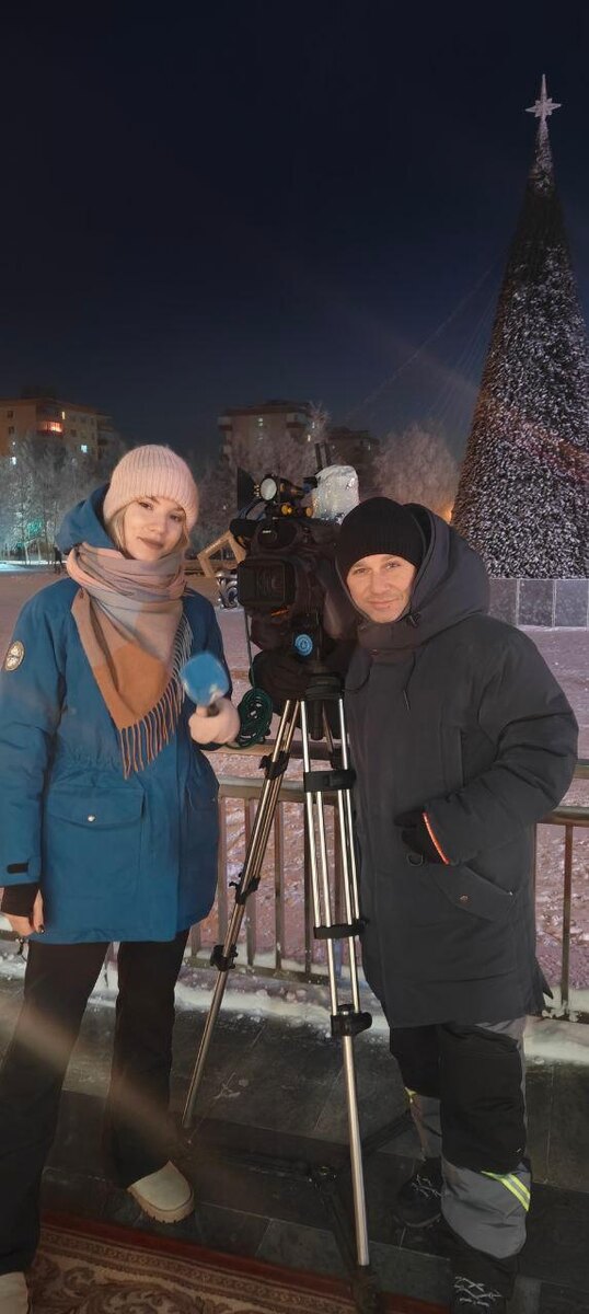 Съемочная группа уже готова показывать зажжение ёлки на площади Ленина в Мирном