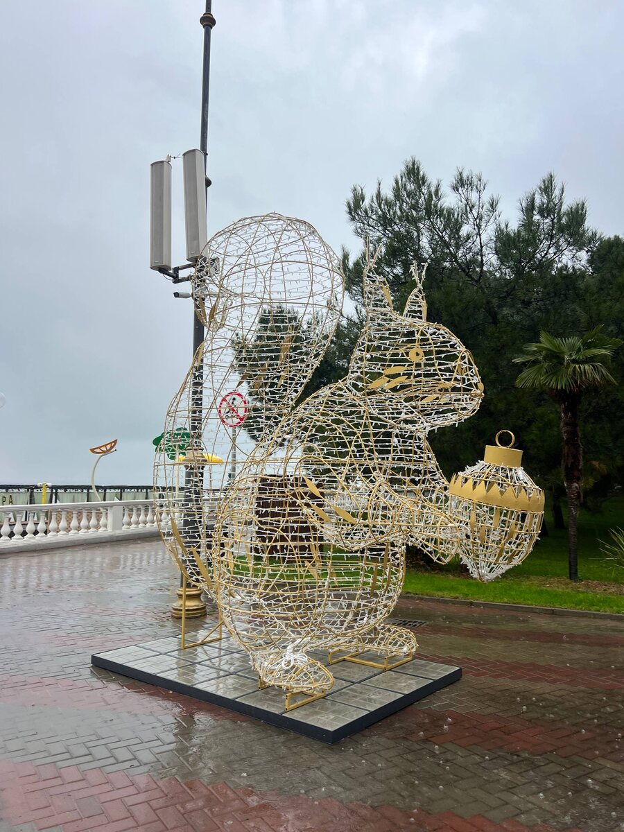 О зиме в Геленджике напоминает только новогодний декор — новые фигуры появились на площади у фонтана. Белочка и шишка будут создавать нам настроение✨
