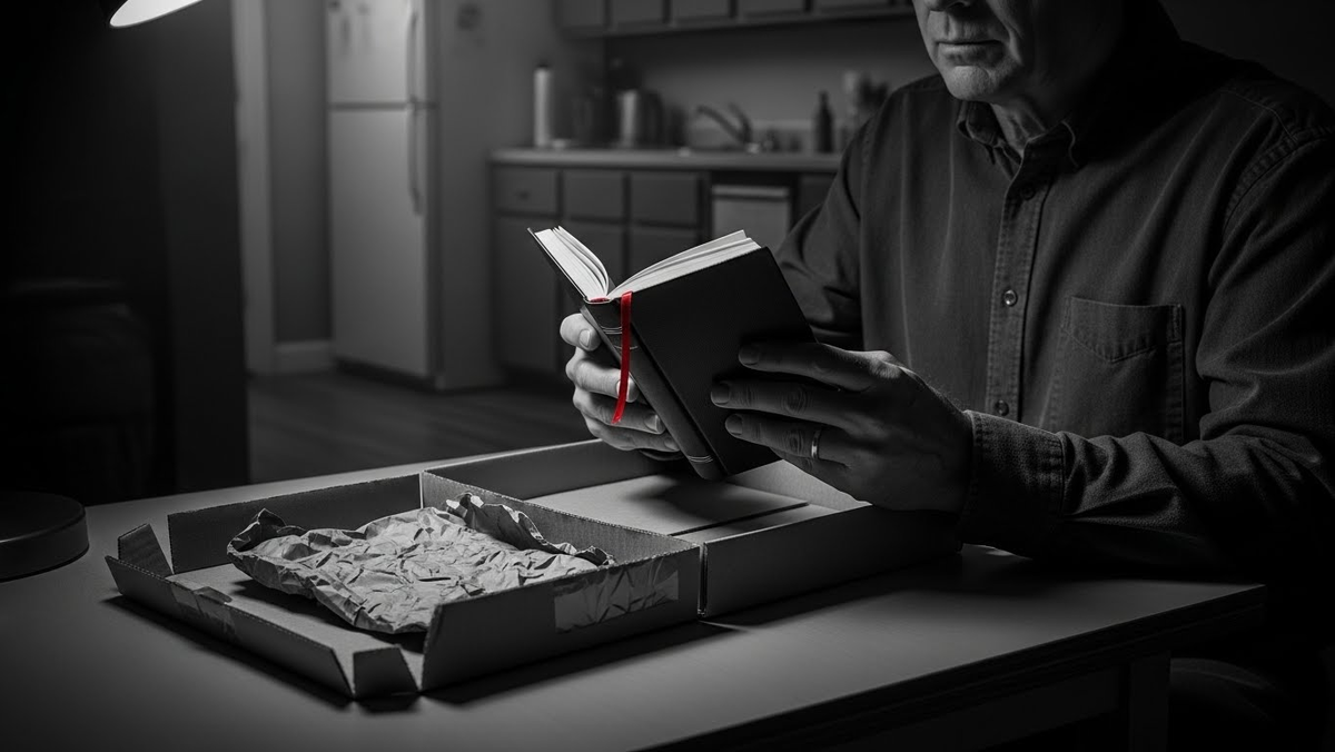 Жена передала её мне. Она получила такую же. Мы открыли их и нашли внутри по небольшой книге. Одну и ту же книгу. Мы ничего такого не заказывали, но посылки были адресованы каждому из нас по отдельности, так что это не может быть ошибкой.