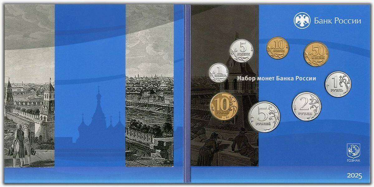 Банк России 1 декабря 2025 года выпустил сувенирный набор монет. На вид это обычная современная мелочь: копейки и рубли. К чему сделали такой подарок нумизматам? Неужели ЦБ намекает на то, что уже пора сохранять дензнаки минувшей эпохи? Время покажет, ну а пока давайте смотреть, что нам предлагают. Итак, выпущены «монеты в нумизматическом наборе в сувенирной упаковке». В комплекте 1 и 5 копеек из стали, плакированной мельхиором; 10 и 50 копеек из стали с латунным гальваническим покрытием; 1, 2 и 5 рублей из стали с никелевым гальваническим покрытием и 10 рублей из стали с латунным гальваническим покрытием. Качество исполнения монет – улучшенное («бриллиант-анциркулейтед»). На упаковке изображены панорамные виды старинной Москвы – города, в котором с конца XIV века чеканится монета. Тираж набора – 35 тыс. штук. Бежим покупать или и так полные закрома мелочи? П. Макаров