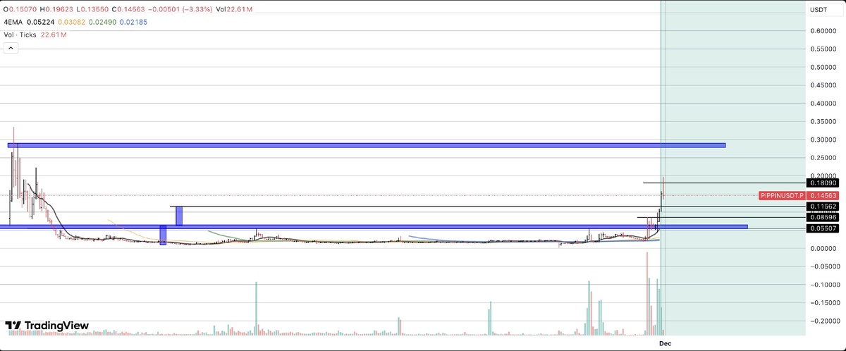 🎯 Аналитик предсказал рост PIPPIN, что дальше? 📈 Токен PIPPIN вырос на +400% за последнюю неделю, достигнув $0.19! 🚀 Аналитик Эдоардо Тельве, ранее предсказавший ралли, ожидает дальнейшего роста. На фоне общего медвежьего тренда мем-коин PIPPIN продемонстрировал впечатляющий рост, превысив 400% за последнюю неделю и почти достигнув отметки в $0.2. По словам аналитика Эдоардо Тельве, это ралли, которое началось после длительного семимесячного периода накопления, имеет все признаки сильного бычьего тренда, подкрепленного растущим объемом и импульсивными свечами. Аналитик уверен, что лучшее еще впереди, с потенциальным таргетом в $0.3-$0.32. 📊 Ключевые моменты: - PIPPIN показал рост более 50% за выходные и удвоил стоимость за несколько дней. - Достигнут пик около $0.19, что является прорывом всех предыдущих сопротивлений.