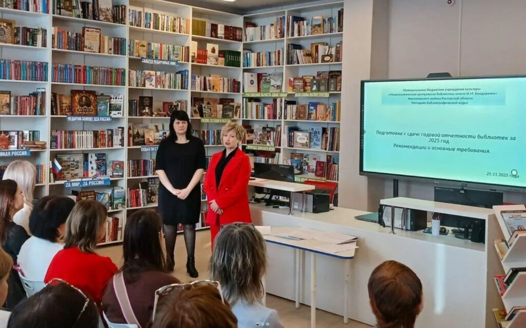 25 ноября в Межпоселенческой центральной библиотеке им. И. Бондаренко состоялся районный семинар-совещание «Библиотечная статистика: вопросы учета результатов деятельности библиотеки по итогам 2025 года». Об этом сообщили специалисты учреждения. В мероприятии приняли участие заведующие отделами МЦБ, которые обсудили актуальные вопросы работы библиотек за 2025 год, а также новые требования к годовой отчетности. Директор МЦБ отметила важность развития краеведческого направления и проанализировала участие библиотек района в смотре-конкурсе «Гордость Земли Приазовской». Конкурс, подчеркнула она, служит стимулом для повышения эффективности работы отделов и активизации историко-патриотического просвещения жителей района. По итогам смотра выявлены и обобщены лучшие практики, победители будут награждены дипломами I, II и III степени. Специалисты методико-библиографического отдела представили изменения и новые показатели в форме ФСН № 6-НК, подробно остановившись на ключевых моментах заполнения