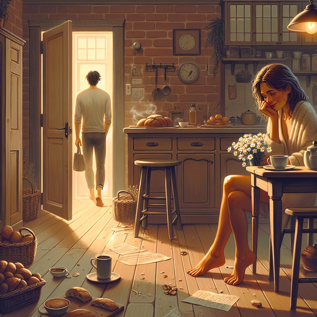 # ДОВЕРИЕ РАЗБИЛОСЬ ВДРЕБЕЗГИ Пахло свежеиспеченным хлебом и горечью кофе. Анна смотрела на мужские ботинки у двери. Он должен был быть уже дома. Обещал. Улыбнулась, вспоминая вчерашний вечер. Она не особо обращала внимание, что он давно не отвечает на сообщения. Не обращала внимания, потому что верила. Верила, что их любовь – это крепость, непробиваемая стена. В дверь позвонили. Не он. В прихожей стояла незнакомая женщина с небольшим букетом ромашек. «По ошибке адрес», – пробормотала она, потупив взгляд. Анна смотрела на нее, как будто сквозь толстое стекло. В голове вспыхнули обрывки фраз. Доверие, словно хрупкая посуда, разбилось вдребезги. Она закрыла дверь. А вы верите в любовь, которая может выдержать любую ошибку?