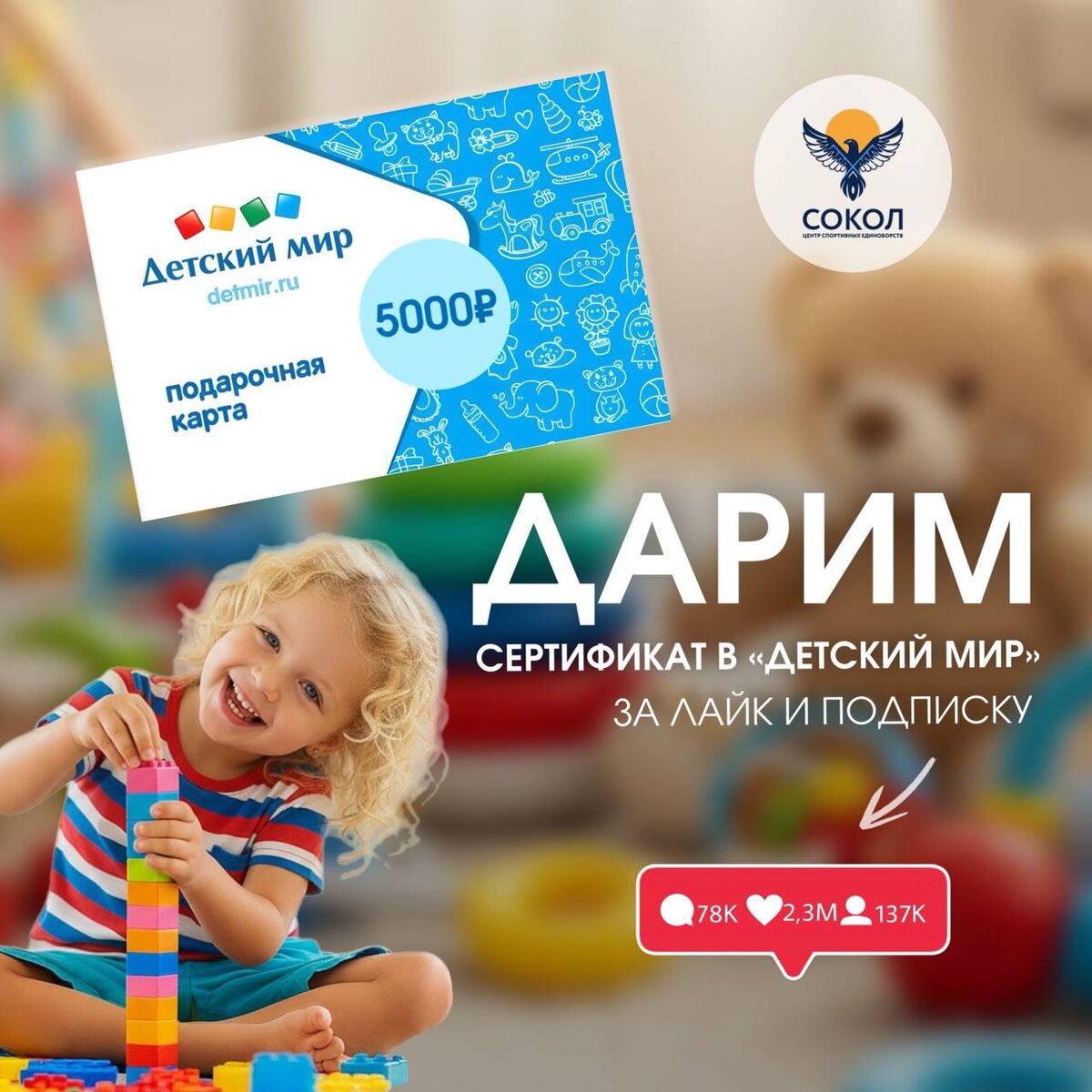 Дарим сертификат в Детский Мир номиналом 5000 рублей за подписку и лайк! Для участия: 1. Подпишитесь на канал ЦСЕ Сокол 2. Нажмите на кнопку "Участвовать" под постом https://t.me/cse_sokol/2231 Итоги будут подведены с помощью умного бота 8 декабря 2025 года, где будет выбран один счастливчик случайным образом, всем удачи!