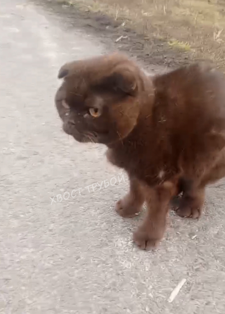 Нам нельзя выезжать на трассу, потому что любой "пакет", "ветошь" или "камень" будет за доли секунды просканирован и идентифицирован как кот. "И снова здравствуйте" - скоро станет нашим девизом, только мы рассказали о беленьком малыше, найденном на трассе, как... снова здравствуйте. Валя помогает бездомным животным по мере своих сил, иногда обращаясь к нам за помощью в лечении, стерилизации и поиске дома для своих подопечных. Поэтому нет абсолютно ничего удивительного в том, что когда она ехала по трассе, лежащий у обочины дороги камень был просканирован и идентифицирован как кот! Кот сидел очень странно, коряво, сгорбившись. Не сидят так здроровые животные. Да и вообще животные на дороге сидеть не должны, даже здоровые. Кот оказался вислоухим, шоколадного окраса. И с лютым ОХД (Остеохондродисплазия). Уже много было написано на нашем канале про охд, много про рукозадых разведенцев, которые, абсолютно не понимая специфики данной породы скрещивают кошек так, что ген, отвечающий за вислоу