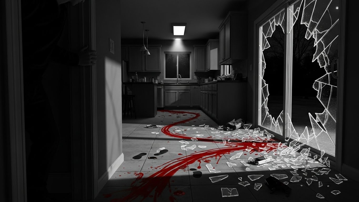 Кухня была за прихожей. Раздвижная дверь во двор — вдребезги, на полу россыпь стекла.