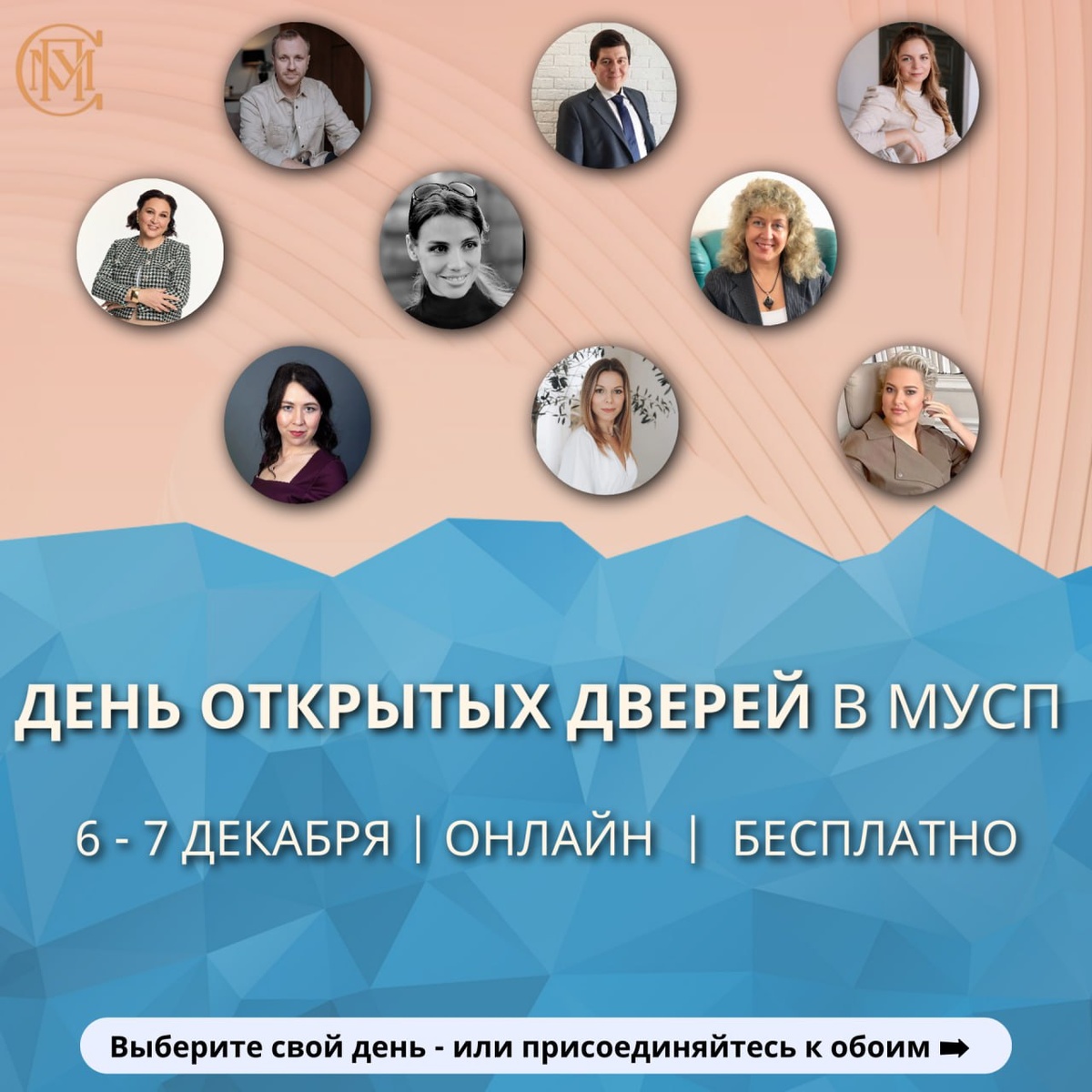 ⏺СОВСЕМ СКОРО - День открытых дверей Международного университета современной психологии (МУСП). 🔵В карточках выше вы найдете расписание по дням, темы выступлений и информацию об экспертах. ⏫ Формат участия: онлайн и бесплатно Можно выбрать один день или присоединиться к обоим, чтобы получить максимум пользы. ☕️ декабря - «Психология для жизни» Вас ждут реальные кейсы, интерактив, практика самопомощи и инструменты, которые можно применить уже сегодня. ЗАРЕГИСТРИРОВАТЬСЯ НА ДЕНЬ 1 ☕️ декабря - «Психология как профессия» Этот день будет полезен тем, кто хочет развивать практику, изучать новые подходы и расширять профессиональное сообщество. ЗАРЕГИСТРИРОВАТЬСЯ НА ДЕНЬ 2 🎁 Каждого участника ждёт: ✔️ Сертификат участника ✔️ Доступ к записям выступлений на 3 месяца ✔️ Методические материалы и гайды от спикеров ✔️ Возможность попасть в профессиональный чат для общения и нетворкинга ✔️ Подарки и бонусы от университета Подробности здесь⤵️ УЗНАТЬ ПОДРОБНЕЕ ✉️ Служба заботы МУСП - @iuni