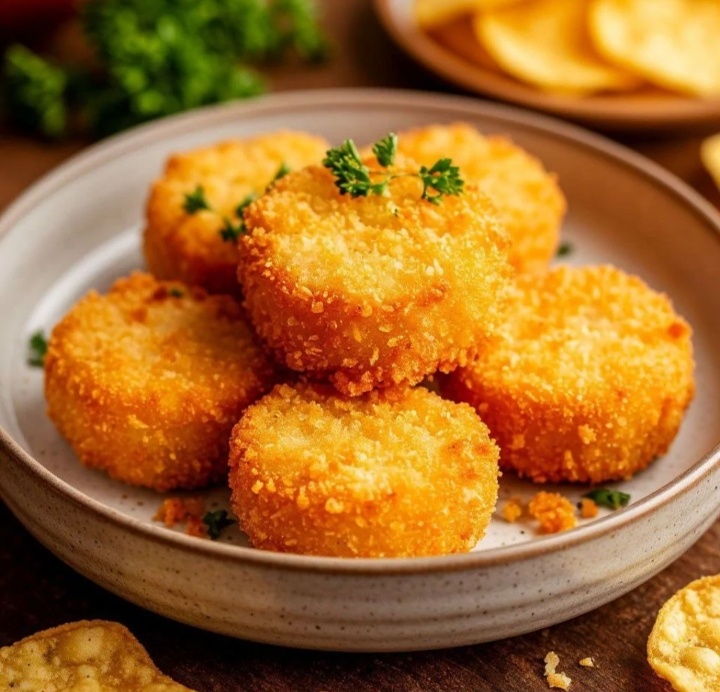5․ Сбрызните курицу сливочным маслом. Выпекайте наггетсы 15–18 минут в разогретой духовке до золотистой корочки.