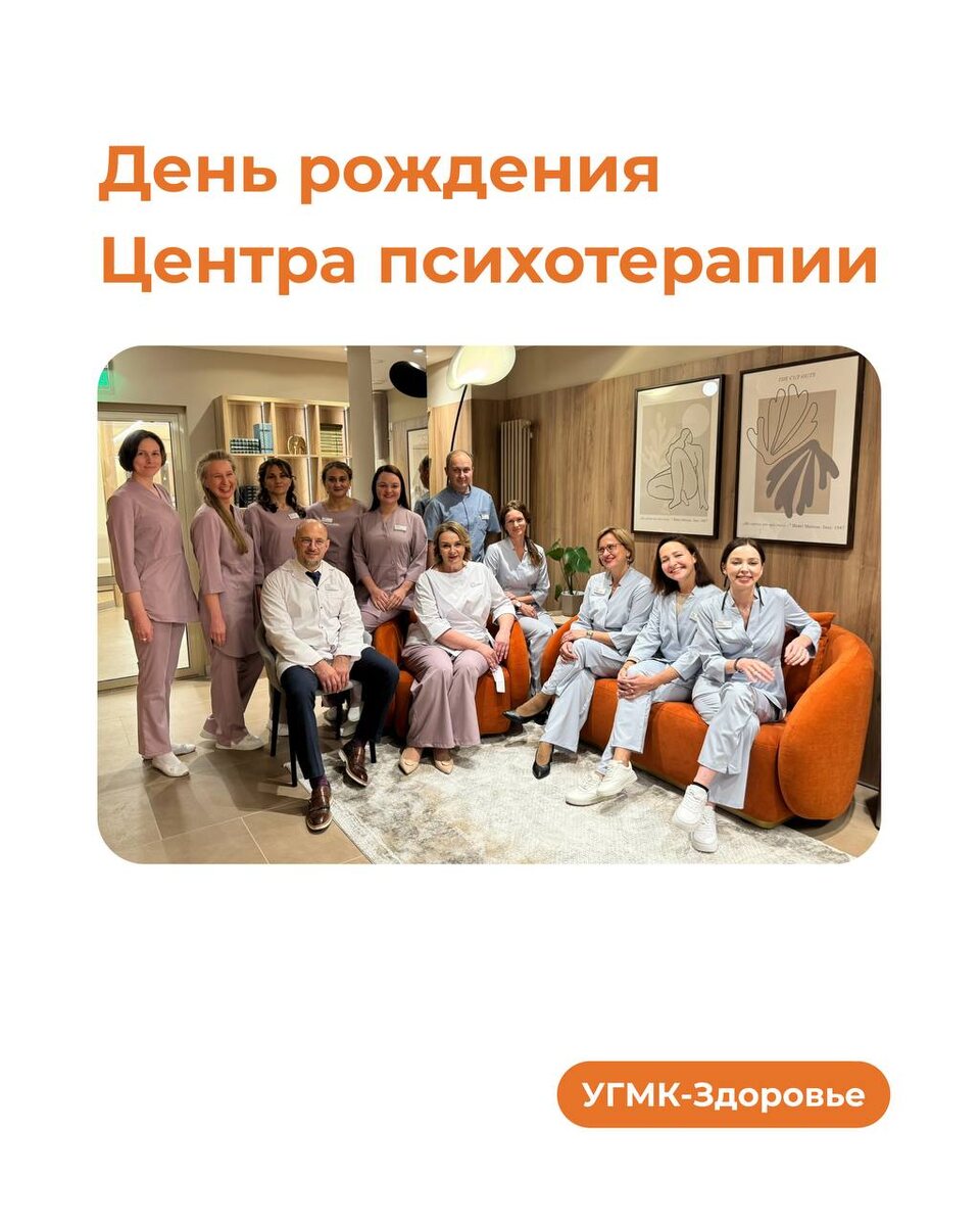Сегодня мы отмечаем день рождения нашего Центра психотерапии! 🎉 Обновленному Центру психотерапии «УГМК-Здоровье» исполнился год! Филиал на Уральской, 52а стал местом, где соединяется забота о теле и душе. За это время 33 945 пациентов получили нашу помощь амбулаторно и 145 человек прошли лечение в стационаре. Центр психотерапии «УГМК-Здоровье» — это: 🔶 Комплексный подход к психическому здоровью: консультации психотерапевтов и психиатров, психотерапевтов, неврологов, помощь при тревоге, депрессии, стрессах, зависимостях, семейных и личных кризисах. 🔶 Разнообразие программ и услуг: групповые и индивидуальные сеансы, телесно-ориентированная терапия, арт- и песочная терапия, физиотерапия, массаж, йога, программы восстановления. 🔶 Комфорт и безопасность: конфиденциальность, стационар уровня пятизвездночного отеля, уютные индивидуальные палаты, кабинеты и зоны ожидания. 🧡 Спасибо каждому, кто доверил нам своё здоровье и душевное равновесие! 🌟 Пусть впереди будет ещё больше исто