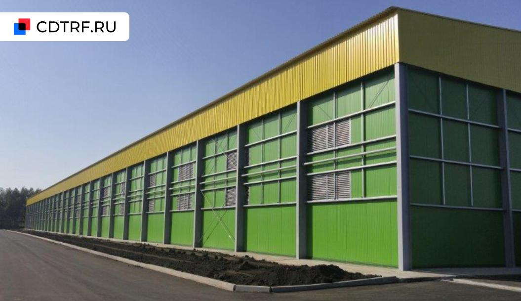 Наружные стены и кровля выполнены из сэндвич-панелей и профилированного стального листа.