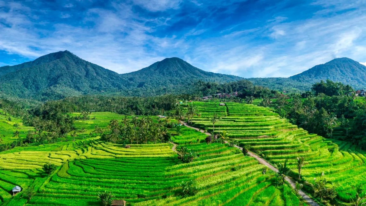 Джатилуви рисовые террасы рядом с городом Табанан. Они расположены на высоте 700 метров над уровнем моря у подножья горы Батукару. Центральная часть острова идеально подходит для выращивания риса. Здесь не так жарко, как на юге Бали (где ландшафт состоит преимущественно из равнин), и не так холодно, как в горных районах северной части. Рис на индонезийском языке называется nasi. Практически в любом кафе и ресторане вы обязательно найдете в меню гарниры из риса. Собственно, он является основой для любых блюд, из него готовят различные закуски и даже кондитерские изделия (например, рисовые конфеты — Onde Onde). Также рис используется для приготовления спиртных напитков вроде браги и самогона. Проще говоря. Бали