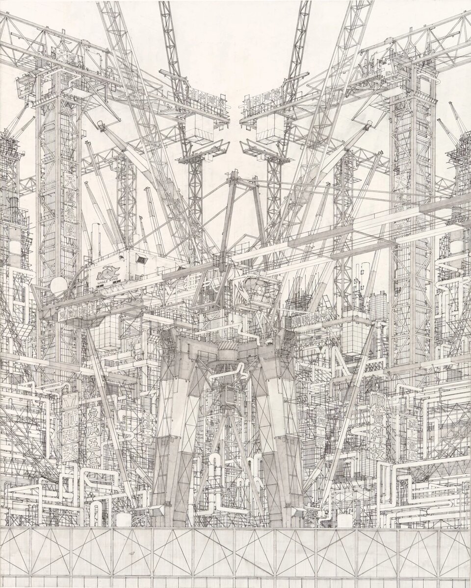 Стремящиеся ввысь чёрно-белые небоскрёбы, усыпанные строительными кранами улицы, целые ряды вывесок с угловатыми иероглифами. Может показаться, что эти иллюстрации сгенерировал искусственный интеллект, однако это не так. Гигантские мегаполисы, построенные на бумаге с помощью чернил, – работы японского художника Тадзимы Дайсукэ. И они просто потрясают воображение.