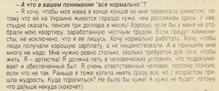 В ответ на пост Лариса Долина боялась, что её квартиру отберут коммунисты — об этом она говорила в 1996 году, призывая голосовать за Ельцина. На волне «отмены» певицы пользователи соцсетей нашли её старое интервью. «Хорошо, если бы у меня не отобрали мою квартиру, заработанную честным трудом. Если придут коммунисты, не исключено, что я ее лишусь», — говорила Долина в интервью «Московской правде» 29 июня 1996 года. 📍 Подписывайтесь на Инфо24 | Прислать новость