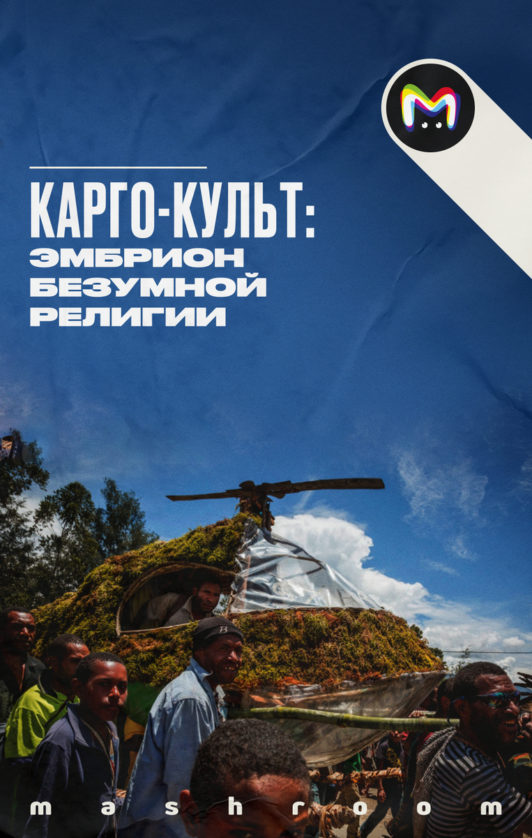 Самолёты из навоза и соломы стали символом этого культа. Его адепты связывались друг с другом и с Небесами через рации из бамбука и наушники из половинок кокосов. Они строили диспетчерские вышки и маяки, соединённые проводами-лианами. Прокладывали взлётно-посадочные полосы. Под наблюдением экспертов-жрецов смиренно учились муштре — с импровизированными ружьями в руках и кучей нарисованных медалек на груди. Однажды аборигены, живущие на Чёрных островах в Тихом океане, узнали, что жизнь — это не сплошная батрачка. Если Небеса добры к вам, они и так даруют всё, что нужно: и еду, и кров, и фляги с "веселящим зельем". Так зародился культ карго. Что за культ такой? Откуда взялся его самый известный пророк Джон Фрум? И почему последователи карго на самом деле оказались правы? Рассказываем в новой статье. Культ карго, он же религия самолётопоклонников и культ Даров небесных, — это группа религиозных движений. Он зародился на островах Тихого Океана примерно в конце XIX века. Но особенно популяр