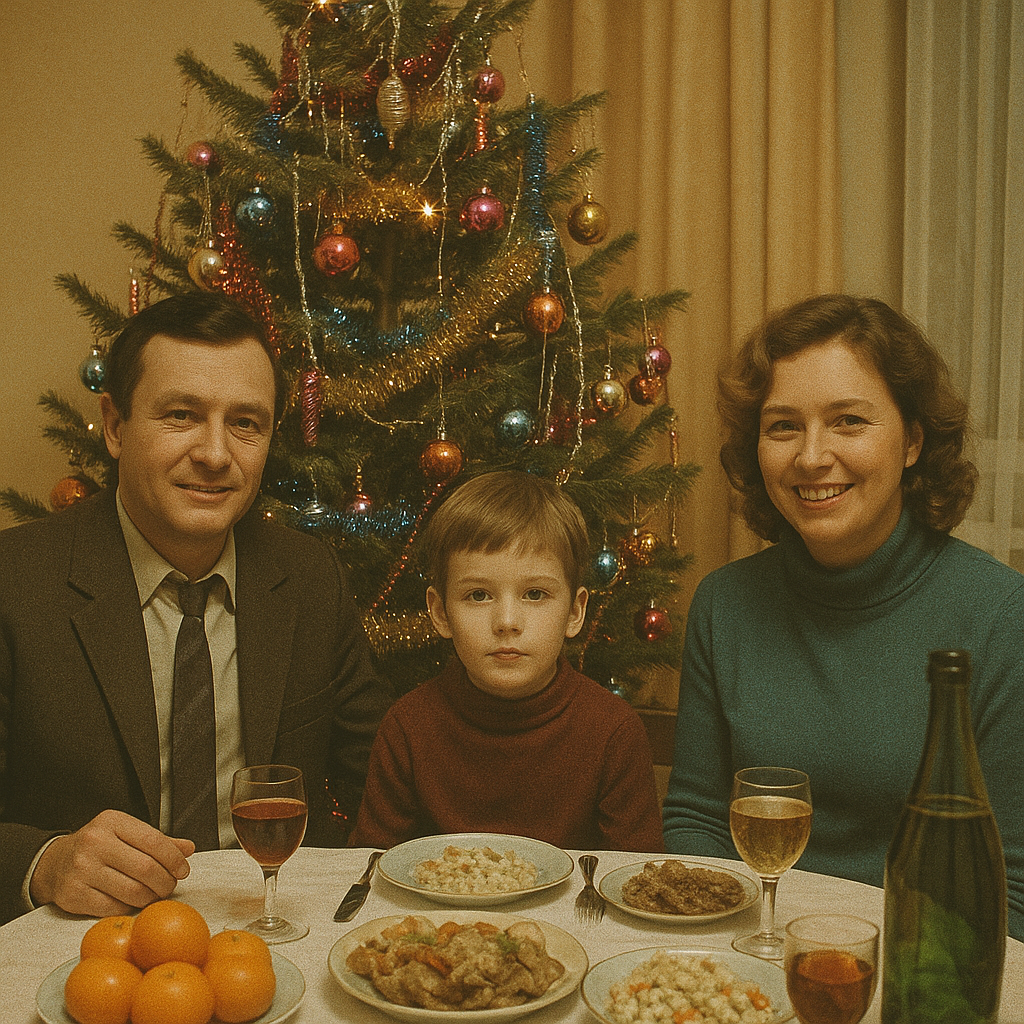 Праздник всегда был семейным. К столу садились рано, ближе к девяти вечера. Смотрели концерты, смеялись, обсуждали планы. Дети бегали от комнаты к комнате, заглядывали под ёлку, придумывали игры.