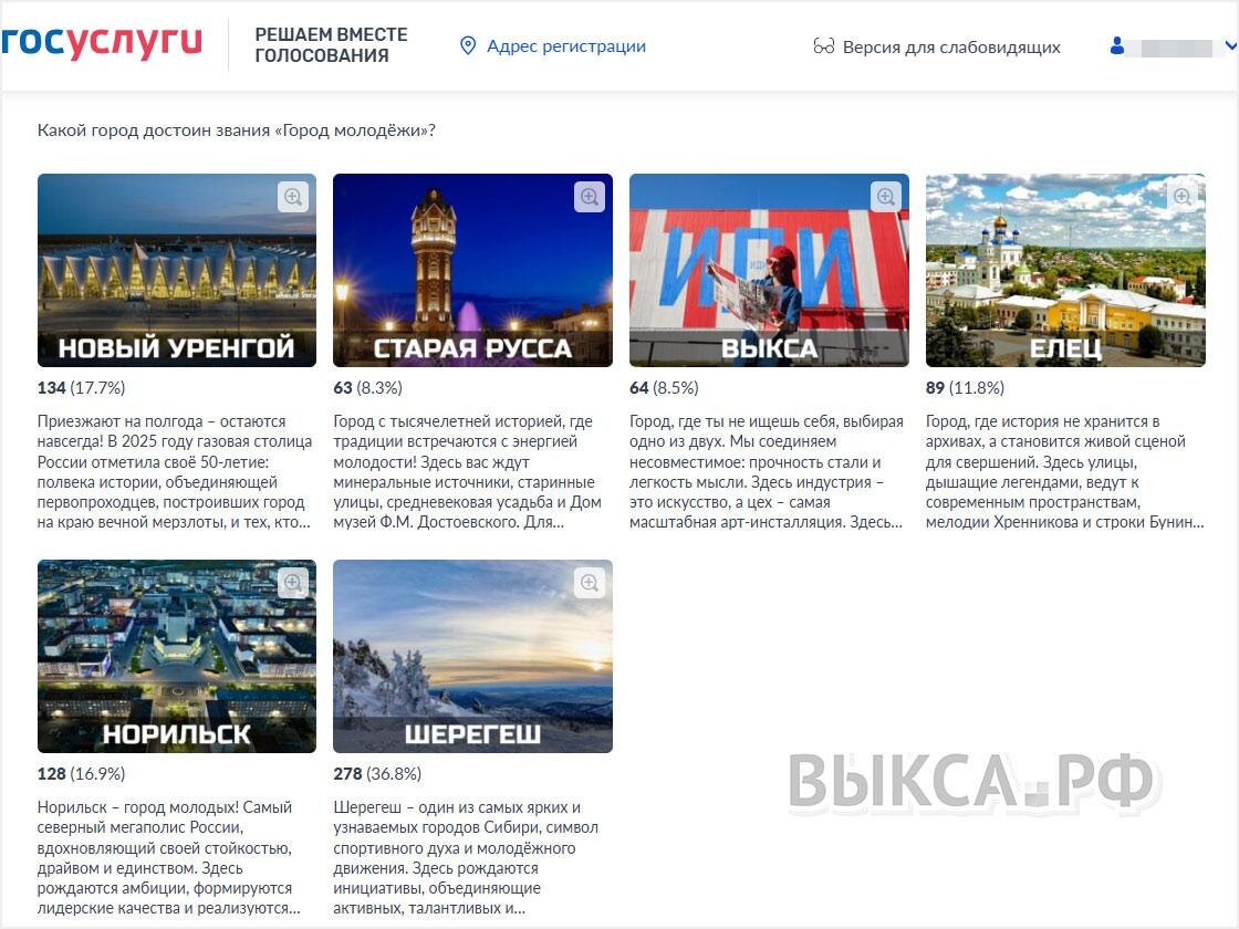 В ответ на пост 🥳 Выкса в финале премии «Время Молодых»: голосуйте за город молодёжи всей страной Выкса вышла в финал Всероссийской премии «Время Молодых» в номинации «Город молодежи». Это шанс заявить на всю страну о Выксе, где кипит энергия, рождаются идеи и меняется будущее. ❗️Каждый голос важен, но есть условие: голосование проходит через Госуслуги и поддержать Выксу могут только жители других регионов. По возможности, привлекайте друзей/знакомых/родственников из других областей, чтобы они голосовали за Выксу 👉 pos.gosuslugi.ru/lkp/polls/558552/?ysclid=mimp280bff95565210 🔗 выкса.рф/52201-gorod-molodezhi.html