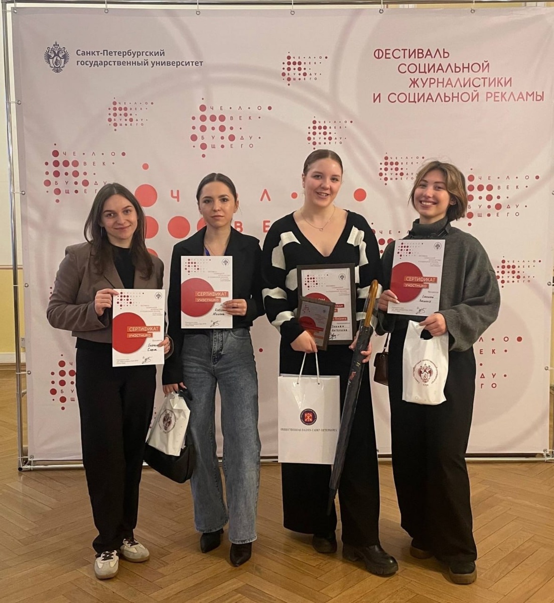 Студенты и выпускники ГИКИТ с блеском представили наш вуз на IV Межвузовском фестивале социальной журналистики и рекламы «Человек будущего» в Санкт-Петербурге⚡️ Среди 55 университетов из 32 городов России, Беларуси и Казахстана мы оказались лучшими в номинациях: ⚪️ «80 лет Победы в Великой Отечественной войне»: студентка кафедры телевидения Ангелина Унанян получила награду за работу о блокаднице Серафиме Ивановне Королёвой. ⚪️ «Видеореклама»: в этой номинации победил ролик «К своему языку любо», созданный выпускницей кафедры телевидения Дариной Фабричкиной под руководством доцента кафедры телевидения Михаила Фатеева. ⚪️«Год семьи в России»: студентка кафедры режиссуры документального фильма Дарья Смолина победила со своей работой «Брак». ⚪️«Фотография»: студентка кафедры медиакоммуникационных технологий Виктория Ярец заняла 3-е место. ⚪️«Плакат»: специальный приз жюри за выразительность художественного решения достался Дарье Сурманидзе. Поздравляем наших звездочек и желаем ни