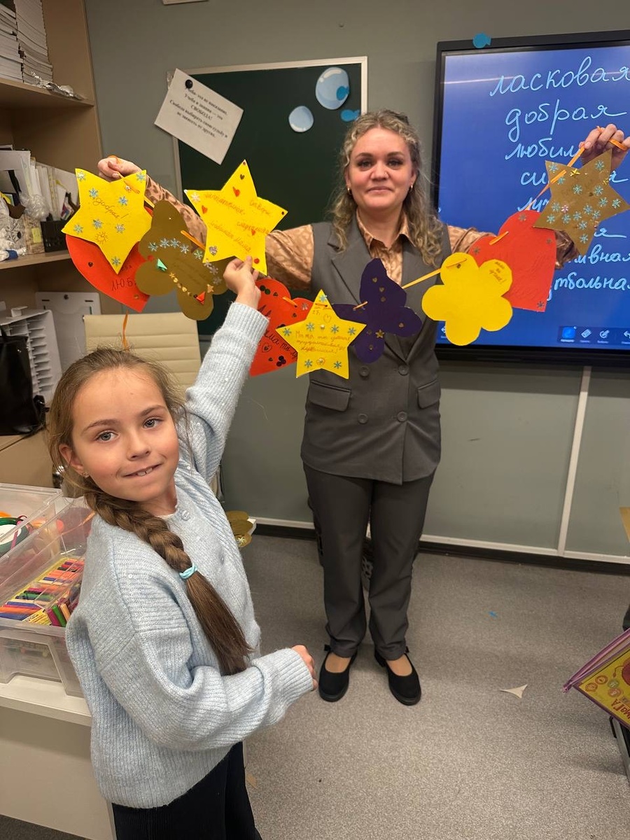По традиции День матери в России отмечается в последнее воскресенье ноября, и это один из самых тёплых и душевных семейных праздников в году. Спасибо вам, мамы, за заботу и поддержку, за вкусные обеды и выученные уроки, за нежные руки, за тысячи объятий и поцелуев, за доброту, за безграничную, бесконечную, безусловную любовь. ❤️ В честь Дня Матери на уроке технологии второклассники подготовили сюрприз для мам — большую и яркую праздничную гирлянду. «На уроке технологии во 2 «Б» классе царила особая атмосфера, – говорит учитель технологии Мария Юрьевна Афанасьева. – Это был не просто урок, а настоящий проект, в котором соединились старание, фантазия и любовь каждого ребёнка. Ребята работали в команде, но у каждого была своя, особенная миссия: кто-то вырезал сердечки, кто-то – цветочки, звёздочки или бабочки. Самое удивительное было наблюдать, как одно и то же задание каждый ученик выполнил по-своему, неповторимо! Дети украшали свои шаблоны блестящими пайетками, раскрашивали их самыми яр