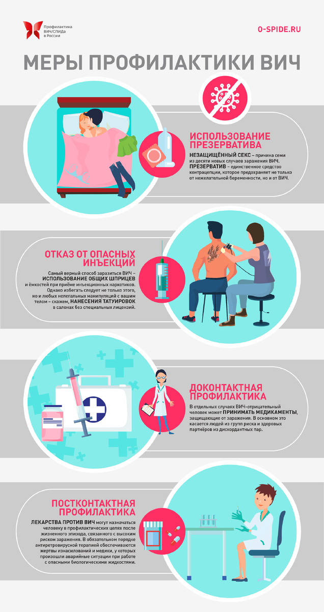 🚩 Чем опасен ВИЧ? Вирус иммунодефицита человека (ВИЧ) атакует клетки крови, ответственные за формирование иммунитета. Инфекция передается с биологическими жидкостями от организма зараженного человека к здоровому. Наибольшую опасность представляют кровь, сперма, влагалищные выделения, секрет из прямой кишки, грудное молоко. Болезнь не передается через рукопожатие или объятия, укусы насекомых, совместное пользование ванной комнатой, туалетом, общей посудой или через воду в бассейне. При несвоевременной диагностике ВИЧ может уничтожить значительное количество иммунных клеток и снизить устойчивость организма к вирусам и бактериям, которые в обычных условиях не вызывают заболеваний. Крайняя и самая тяжелая форма ВИЧ-инфекции – синдром приобретенного иммунодефицита (СПИД). На данной стадии человек чаще всего умирает от заболеваний, которые не возникают у людей с нормальным иммунитетом, например, грибковые пневмонии, некоторые виды опухолей, вирусные инфекции. Несмотря на то, что на с