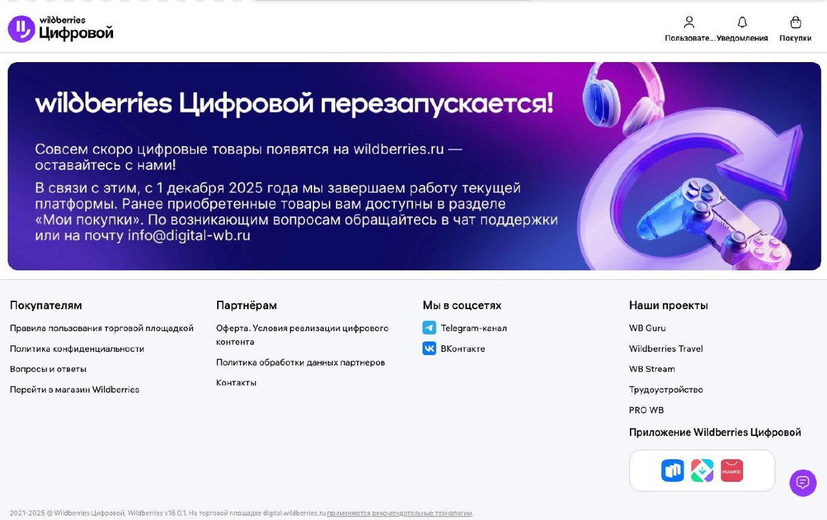 Цифровой WB повесил заглушку и убрал товары. Ваши покупки еще 45 дней (до 15 января) доступны в личных кабинетах. Ждем когда курсы и книги можно будет выгружать на основной WB