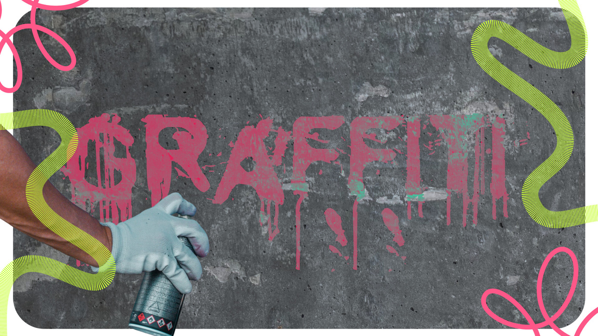 Детали делают граффити-оформление живым, но не должны перегружать дизайн. Подтёки, аэрозольные эффекты, текстуры стен и яркие градиенты усиливают атмосферу, однако ключевым элементом остаётся сам шрифт. Вокруг него строится вся композиция, поэтому сначала подбирай начертание, а уже потом добавляй визуальные акценты.