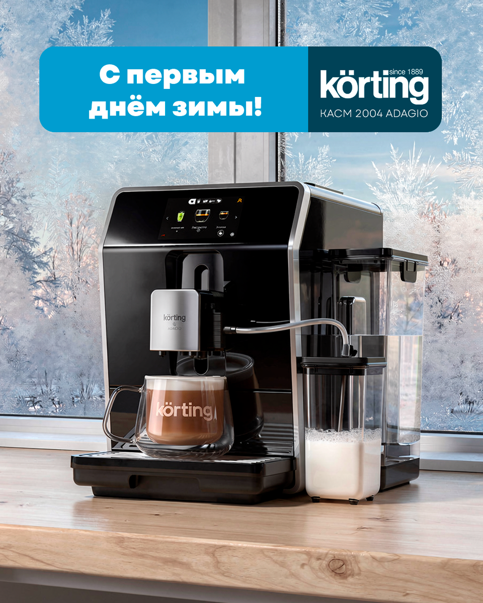Первый день зимы встречает нас холодным воздухом за окном, и особенно приятно начать такое утро с чашки кофе с нежной молочной пенкой, которая делает каждый момент теплее и уютнее. Чтобы приготовить идеальный кофе с нежной молочной пенкой, воспользуйтесь кофемашиной Korting KACM 2004 Adagio с капучинатором Cream Expert и отдельным контейнером для молока, который удобно хранить в холодильнике: https://clck.ru/3EQTXW