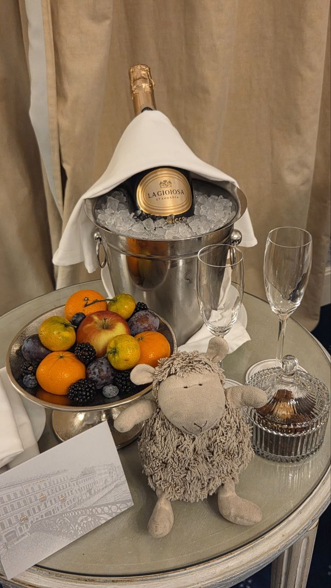 На столике у китайского торшера ждал еще один сюрприз – презент от отеля. Итальянское игристое, фрукты-ягоды, шоколадные конфеты ручной работы и открытка с пожеланиями приятного отдыха. Милота!!! Как мы любим ❤️❤️❤️ #мойка22