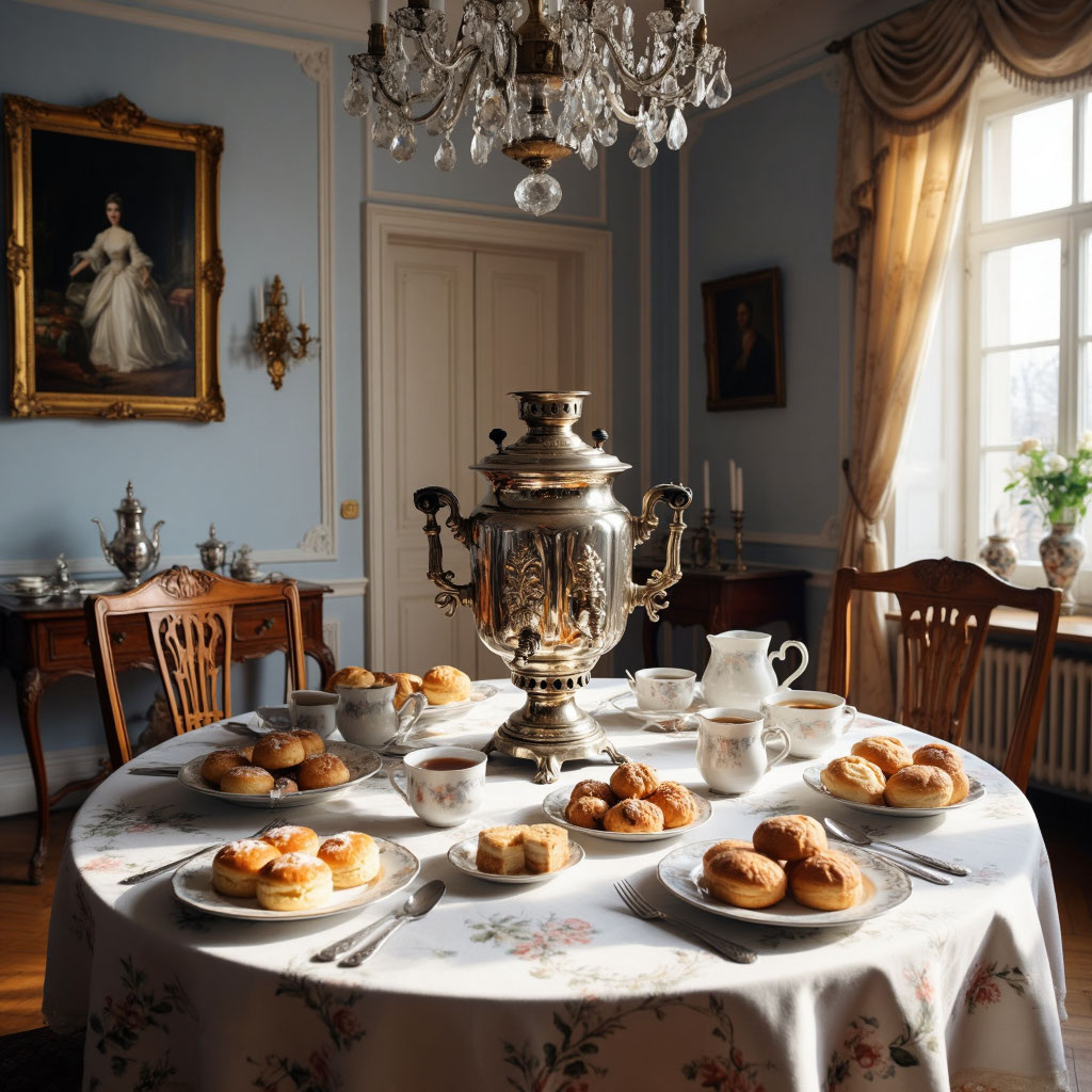 В любом доме обязательно был самовар, зачастую серебряный, подносимый слугой. Его ставили в гостиной или буфетной, и он превращался в настоящий центр утреннего ритуала.