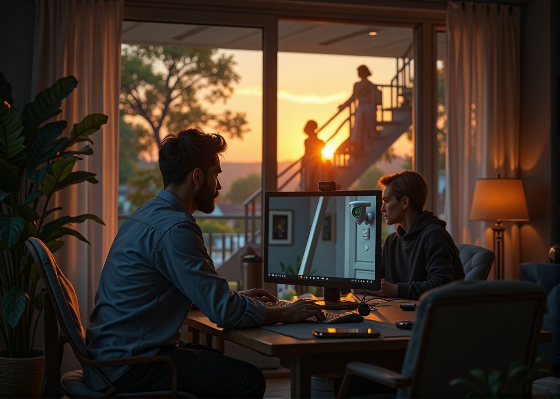 Витражная дверь отражала черный зимний вечер. В прихожей лег тонкий ледяной свет от уличного фонаря, перемешиваясь с теплом ламп — в этом контрасте Борис различал все: недосказанности в доме, дыхание под потолком, ускользающую правду в усталых глазах жены. Скрип ключа был резким, будто нота на скрипке. Борис снял пальто, повесил его на крючок. Ни звука. Взгляд скользнул по монитору на комоде — весь дом, кроме одного участка на чердаке, был под наблюдением камер. «Привет», — тихо сказал, будто в пустоту. Жена не ответила. Только легкий шум посуды из кухни. Там — она, Ира, привыкшая к этому дому, к контролю и аккуратности мужа, но не к собственным страхам. Неровные ступени скрипели. Чердак в доме был единственным уголком без глаза камеры. Здесь пахло древесиной и плесенью, стояли старые книги и коробки с детскими рисунками. Ира частенько уходила сюда, бросая на мужа короткие взгляды — тогда, когда казалось, будто он смотрит на нее не глазами, а через объектив. «Есть хочешь?» — спросила ж