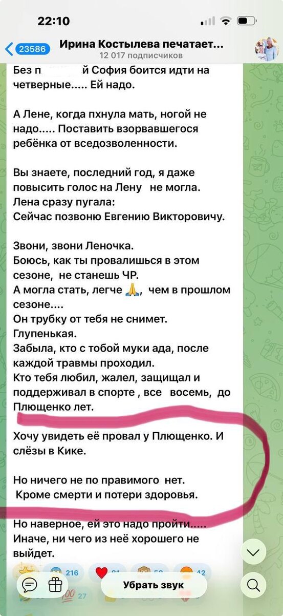 π€¬π€¬π€¬ Β«ΠΠΎΡΠΏΠΎΠ΄ΠΈ, ΠΊΠ°ΠΊΠ°Ρ ΠΆΠ΅ ΠΌΠ΅ΡΠ·ΠΎΡΡΡ!Β» ΠΠ²Π³Π΅Π½ΠΈΠΉ ΠΠ»ΡΡΠ΅Π½ΠΊΠΎ ΠΏΠΎΠ΄Π΅Π»ΠΈΠ»ΡΡ ΠΏΠΎΡΡΠΎΠΌ ΠΡΠΈΠ½Ρ ΠΠΎΡΡΡΠ»Π΅Π²ΠΎΠΉ β ΠΌΠ°ΡΠ΅ΡΠΈ ΠΠ»Π΅Π½Ρ, Π²ΠΎΡΠΏΠΈΡΠ°Π½Π½ΠΈΡΡ Π΅Π³ΠΎ Π°ΠΊΠ°Π΄Π΅ΠΌΠΈΠΈ. ΠΠ΅Π½ΡΠΈΠ½Π°, Π½Π΅ ΠΎΠ±ΡΠ°ΡΠ°Ρ Π²Π½ΠΈΠΌΠ°Π½ΠΈΡ Π½Π° ΠΏΡΠ°Π²ΠΈΠ»Π° ΡΡΡΡΠΊΠΎΠ³ΠΎ ΡΠ·ΡΠΊΠ°, ΠΏΠΎΠΆΠ΅Π»Π°Π»Π° ΡΠ²ΠΎΠ΅ΠΉ Π΄ΠΎΡΠ΅ΡΠΈ Π½Π΅ΡΠ΄Π°ΡΠΈ. Β«ΠΡ Π·Π½Π°Π΅ΡΠ΅, ΠΏΠΎΡΠ»Π΅Π΄Π½ΠΈΠΉ Π³ΠΎΠ΄, Ρ Π΄Π°ΠΆΠ΅ ΠΏΠΎΠ²ΡΡΠΈΡΡ Π³ΠΎΠ»ΠΎΡ Π½Π° ΠΠ΅Π½Ρ Π½Π΅ ΠΌΠΎΠ³Π»Π°. ΠΠ΅Π½Π° ΡΡΠ°Π·Ρ ΠΏΡΠ³Π°Π»Π°: Π‘Π΅ΠΉΡΠ°Ρ ΠΏΠΎΠ·Π²ΠΎΠ½Ρ ΠΠ²Π³Π΅Π½ΠΈΡ ΠΠΈΠΊΡΠΎΡΠΎΠ²ΠΈΡΡ. ΠΠ²ΠΎΠ½ΠΈ, Π·Π²ΠΎΠ½ΠΈ, ΠΠ΅Π½ΠΎΡΠΊΠ°. ΠΠΎΡΡΡ, ΠΊΠ°ΠΊ ΡΡ ΠΏΡΠΎΠ²Π°Π»ΠΈΡΡΡΡ Π² ΡΡΠΎΠΌ ΡΠ΅Π·ΠΎΠ½Π΅, Π½Π΅ ΡΡΠ°Π½Π΅ΡΡ Π§Π ... ΠΠ½ ΡΡΡΠ±ΠΊΡ ΠΎΡ ΡΠ΅Π±Ρ Π½Π΅ ΡΠ½ΠΈΠΌΠ΅Ρ. ΠΠ»ΡΠΏΠ΅Π½ΡΠΊΠ°Ρ... Π₯ΠΎΡΡ ΡΠ²ΠΈΠ΄Π΅ΡΡ Π΅Ρ ΠΏΡΠΎΠ²Π°Π» Ρ ΠΠ»ΡΡΠ΅Π½ΠΊΠΎ. Π ΡΠ»ΡΠ·Ρ Π² ΠΠΈΠΊΠ΅. ΠΠΎ Π½ΠΈΡΠ΅Π³ΠΎ Π½Π΅ ΠΏΠΎ ΠΏΡΠ°Π²ΠΈΠΌΠΎΠ³ΠΎ Π½Π΅Ρ. ΠΡΠΎΠΌΠ΅ ΡΠΌΠ΅ΡΡΠΈ ΠΈ ΠΏΠΎΡΠ΅ΡΠΈ Π·Π΄ΠΎΡΠΎΠ²ΡΡΒ», β Π½Π°ΠΏΠΈΡΠ°Π»Π° ΠΡΠΈΠ½Π° Π² Telegram (Π°Π²ΡΠΎΡΡΠΊΠΈΠ΅ ΠΎΡΡΠΎΠ³ΡΠ°ΡΠΈΡ ΠΈ ΠΏΡΠ½ΠΊΡΡΠ°ΡΠΈΡ ΡΠΎΡ