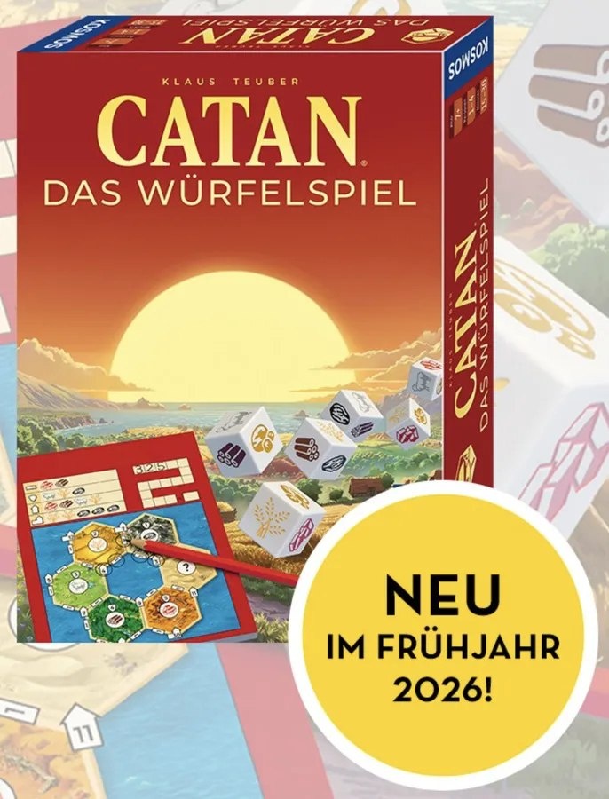 KOSMOS готовят к выпуску два новых продукта в семействе Колонизаторов Катана. Первая игра это CATAN: Das Würfelspiel — roll & write версия вышедшей еще в 2007 году Catan Dice Game. Формально там тоже были кубы, но не было составляющей с рисованием. А вторая игра — CATAN: Das Kartenspiel, карточная вариация классической игры, не имеющая отношения к известному Карточному Катану выходившего в 1996 году. Игра совершенно новая и поддерживающая теперь до 4-х игроков. Все это добро выйдет в первой половине 2026 года.