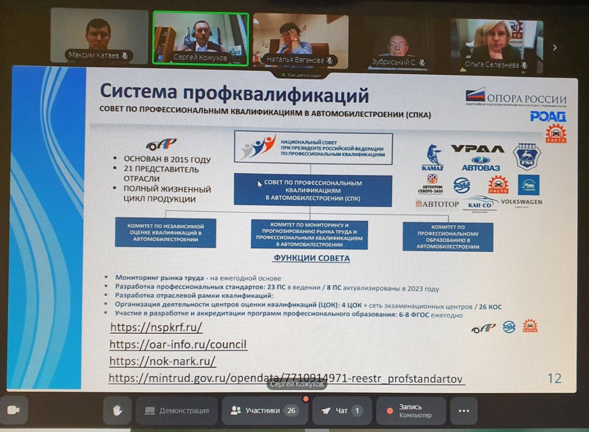 Представители автомобильной сферы со всей страны обсудили кадровые вопросы на вебинаре Комитета «ОПОРЫ РОССИИ» по автобизнесу. Спикерами встречи стали Сергей Кожухов и Ольга Селезнёва — заместители председателя Комитета «ОПОРЫ РОССИИ» по автобизнесу. Открывая вебинар, координатор Комитета «ОПОРЫ РОССИИ» по автобизнесу Максим Катаев рассказал о реализуемых Комитетом инициативах и проектах, связанных с кадрами в автобизнесе. Он напомнил, что в результате масштабной работы с Комитетом Государственной Думы Российской Федерации по молодежной политике, Минпросвещения России и Минтрудом России, удалось включить автомобильную отрасль в перечень наиболее востребованных для подготовки кадров и молодых специалистов в СПО. А это приведет к росту контрольных цифр приема автомехаников в колледжи и увеличению финансирования конкретных мероприятий, направленных на решение проблемы дефицита квалифицированных кадров в отрасли. Также Максим напомнил о важной инициативе, которую удалось реализовать: с 20