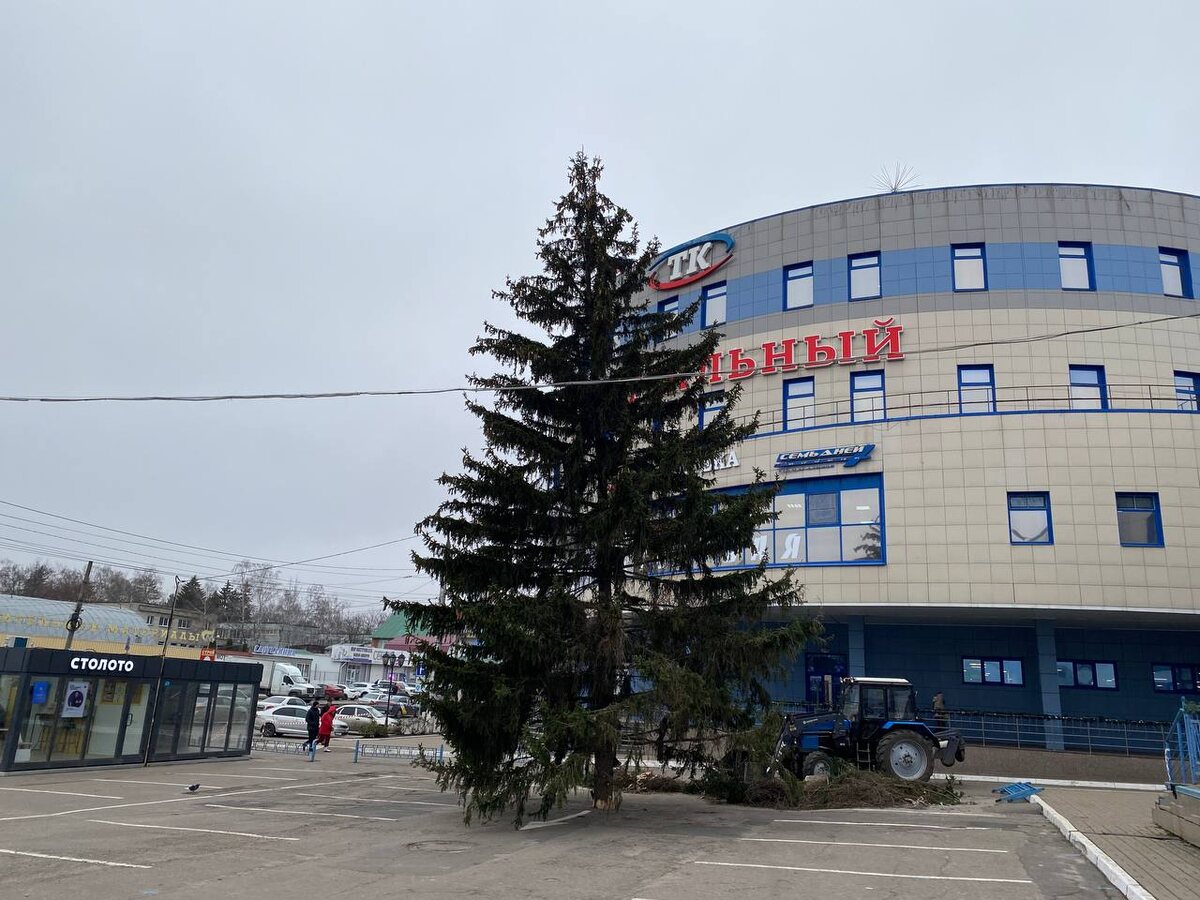 Власти Курска обещали начать украшать город к Новому году с 1 декабря. И вот сегодня утром ёлка появилась возле Центрального рынка. Это настоящее дерево, а не искусственное, как на многих других площадках. Возле Центрального рынка Курска каждый год устанавливают живые ели, не стал исключением и год нынешний. Новогоднюю красавицу уже привезли на место, но украсить пока не успели. Впрочем, украшения на ней уже есть - большие и самые что ни на есть настоящие шишки, которые смотрятся довольно эффектно. Рядом с ёлкой уже торгуют в уличных палатках различными новогодними товарами. Ранее новогодние ёлки были установлены на разных улицах города силами торговых центров.