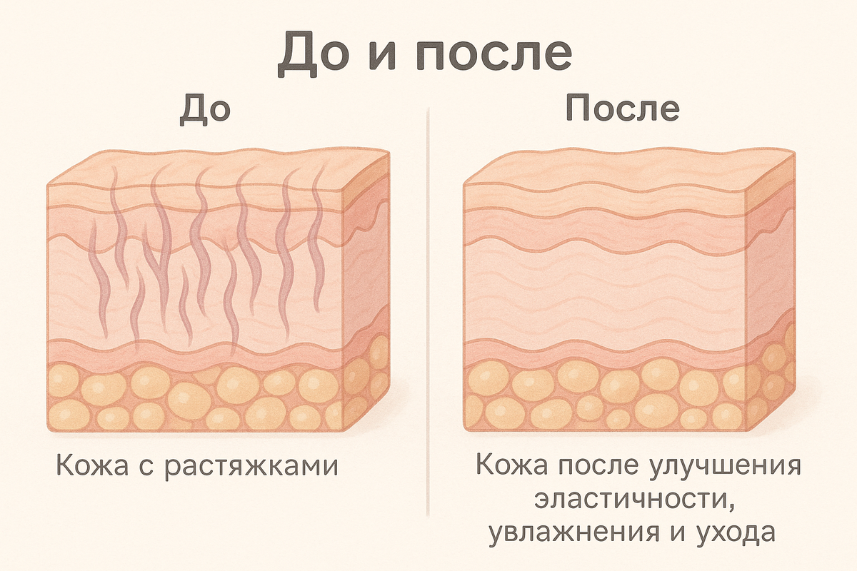 Вы замечали на коже внезапно появившиеся линии, похожие на шрамы? Сначала они могут быть розовыми или фиолетовыми, а со временем становятся светлыми и перламутровыми. Это растяжки, или стрии — своеобразные памятки от нашего организма о том, что кожа пережила период интенсивного растяжения. Но что на самом деле скрывается за их появлением? Давайте разберемся без мифов и домыслов. Представьте себе нашу кожу как эластичную, но очень прочную ткань. Ее прочность и способность растягиваться обеспечивают два белка: коллаген и эластин. Коллаген создает прочный каркас, а эластин позволяет коже возвращаться в исходное состояние после растяжения. Когда кожа подвергается слишком быстрому или сильному растяжению, эти волокна начинают рваться. Организм спешно «латает» повреждения соединительной тканью, которая по структуре отличается от обычной кожи. Именно эти заплатки мы и видим как растяжки. Интересно, что растяжки — это не шрамы в привычном понимании. В них отсутствуют потовые и сальные железы,