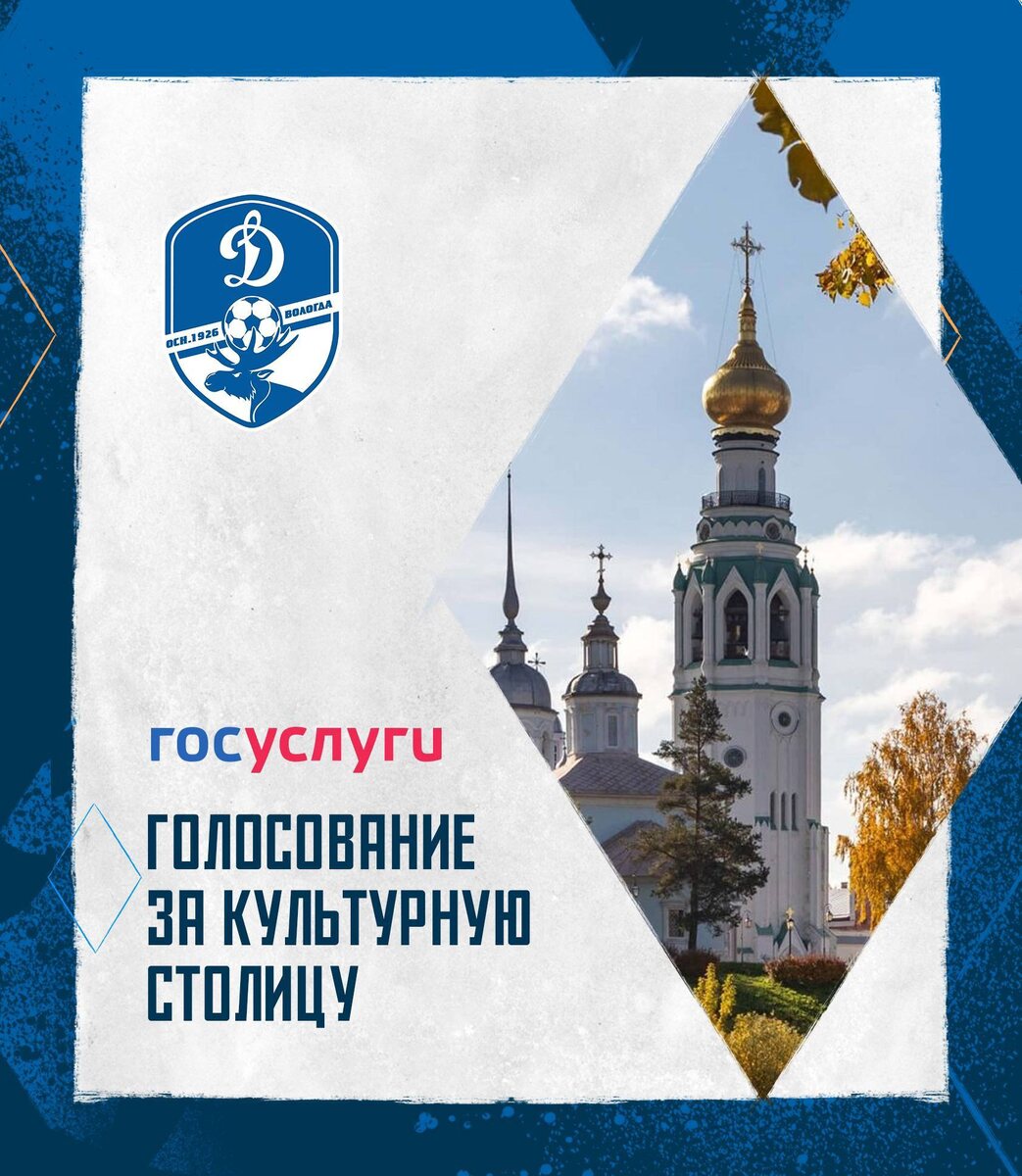 Проголосуй за Вологду в конкурсе «Культурная столица 2027 года» 💙 Областная столица вошла в число восьми финалистов по итогам первого этапа. До 5 декабря на госуслугах проводится народное голосование. На данный момент лидируют Новосибирск, Челябинск и наша любимая Вологда. За столицу Вологодской области отдали свой голос более 192 000 человек. Проголосовать за культурную столицу страны можно по ссылке: clck.ru/3Q4VcV @dynamovologda
