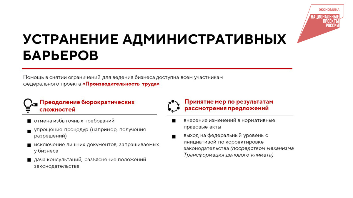 ➡️ У участников федерального проекта есть возможность улучшить условия ведения бизнеса, в том числе снижающие производительность труда. Каждое обращение будет проанализировано на предмет правовой и экономической обоснованности Центром стратегических разработок. В качестве примера административных барьеров можно привести свод правил по проектированию и строительству СП 53-101-98, который ограничивает использование лазерных технологий сверления отверстий, а также постановление Правительства Российской Федерации от 26.12.2024 №1899, не дающее четкого регламента по внесению данных об иностранных гражданах. Такие излишние ограничения и запреты мешают развитию бизнеса и требуют пересмотра. 🗒 Если вы сталкиваетесь с подобными ограничениями и другими мешающими вашему бизнесу нормативными требованиями, приглашаем вас принять участие в опросе и выразить свое мнение. ⭕️ Для сотрудников - https://forms.yandex.ru/u/68792e82f47e7308a6ff2080/