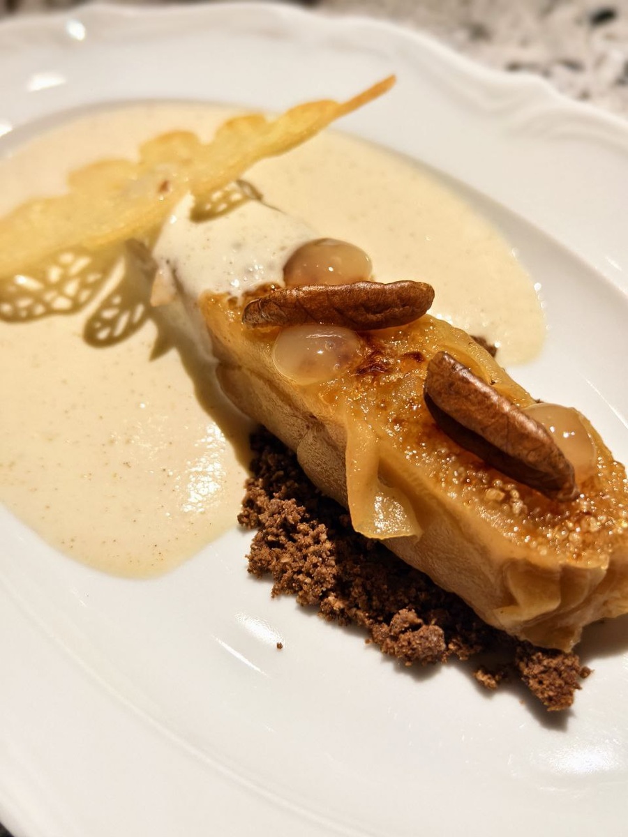 💚Провела чудесный вечер в ресторане Flør. Flør, притаившийся в арке на Чистопрудном бульваре, открылся уже давненько, около пяти лет назад, что для московского проекта в районе Чистых достаточно солидный срок. Внутри камерно, стильно, наблюдать за работой кухни можно прямо из зала, мне ситуативно такое нравится. Меню лаконичное - глаза от бесконечного выбора у вас не разбегутся, но зато позиции проверены годами; обзор на стейк мясника с романо я почитывала ещё году в 21м. 🟢Галета с томатами и страчателлой (950₽) - красивое и вкусное рассыпчатое тесто на сливочном масле, но гвоздь программы здесь это сладкие томаты. 🟢Тыквенный суп с крабом (980₽) - сверху хорошего тыквенного супа положили очень вкусную пенку из сыра и лемонграсса, который, на удивление, очень идёт тыкве. Довершает картинку щедрая порция краба. 🟢Не просто салат (950₽) - очень сладкие клубника и томаты, выгодно оттененные авокадо. А кунжутный соус обязательно буду воспроизводить дома, позицию рекомендую. 🟢Стей