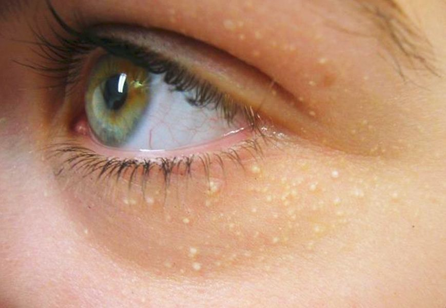 - Ксантелазмы — жёлтые пятнышки вокруг глаз.