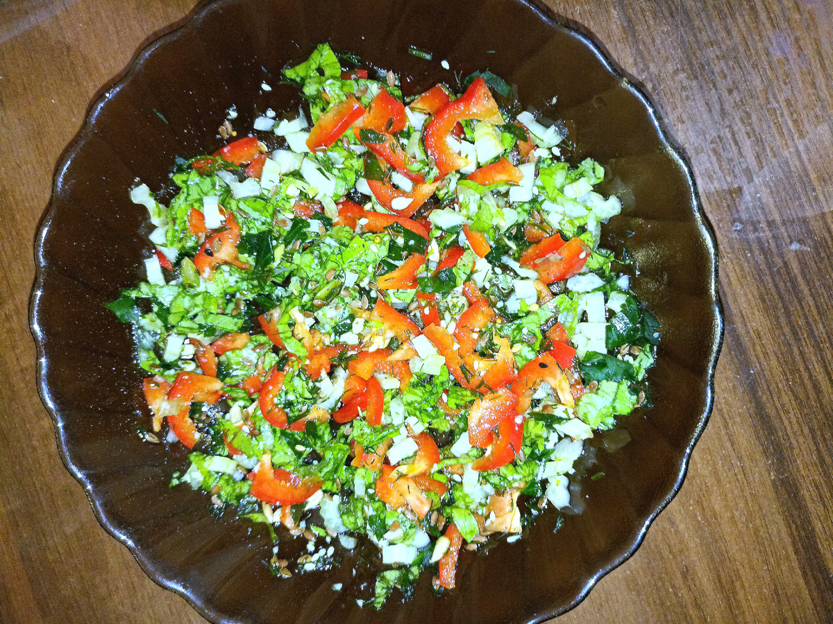 Начало здесь:👇🏼 Итак, друзья, как я и предполагала, мой вчерашний ужин состоял из овощного салата с сельдереем:👇🏼 Оказалось, что в ящике для овощей у меня завалялся болгарский перчик, который я не заметила во время вчерашней "ревизии", и он прекрасно вписался в мой вечерний салатик:👇🏼 Кроме перца, сельдерея и листьев салата туда же была добавлена смесь семян, зелень петрушки и укропа (из заморозки) и льняное масло, весьма полезное для пищеварения. А сельдерей - это просто кладезь полезных веществ, витаминов и минералов.👇🏼 И это ещё не всё! 👇🏼 Кроме того:👇🏼 Сельдерей укрепляет иммунитет, помогает снижению веса, т.к. способствует сжиганию лишних жиров, повышает стрессоустойчивость, улучшает зрение, оптимизирует работу почек, способствует выработке желудочного сока, нормализует давление и работу кишечника, очищает сосуды и защищает их от атеросклероза, является антиоксидантом и предотвращает образование раковых клеток, снижает воспаление при язве и гастрите. И при
