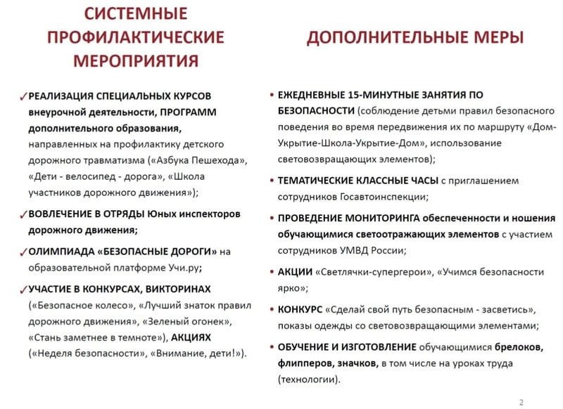 В Белгородской области проработаны дополнительные профилактические мероприятия для обеспечения безопасности детей при переходе дорог В школах вводятся ежедневные 15-минутки по безопасности на дорогах, тематические классные часы с сотрудниками ГАИ, акции «Светлячки-супергерои» и «Учимся безопасности». Кроме того, в рамках конкурса «Сделай свой путь безопасным — засветись» школьники сами делают светоотражающие брелоки, рассказал глава регионального Минобра Андрей Милёхин. «Проводился мониторинг обеспеченности [светоотражающими элементами – прим. ред.] воспитанников дошкольных учреждений, учащихся первых и одиннадцатых классов. Несмотря на высокую обеспеченность, перед нами стоит задача ношения каждым ребенком на портфелях светоотражающих элементов. Понимаем, что этого можно добиться, только взаимодействуя с родителями», — сказал Милёхин. Министр рассказал о муниципальных родительских собраниях, на которых белгородцам рассказывают об ответственности за жизнь и здоровье детей, в том чис
