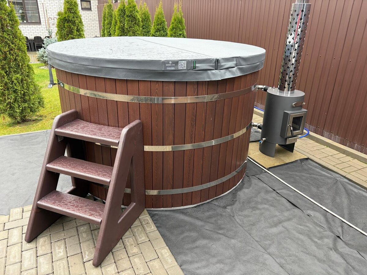 Уже около месяца в продаже новая вертикальная печь PRO серии — компактная, аккуратная и идеальная для купели Good Line SPA. Занимает меньше места, что особенно важно на террасах и небольших площадках.