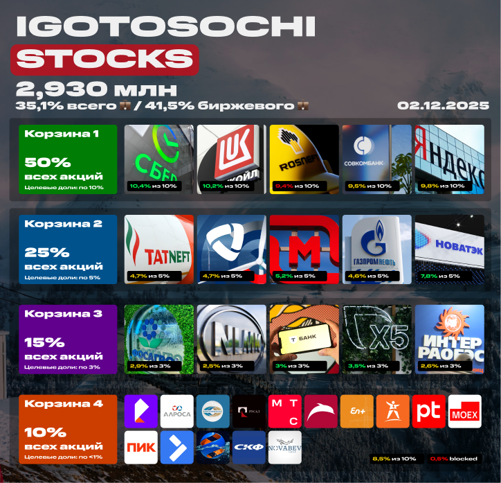 💼 Мой портфель акций на 2 декабря 2025. 2,930 млн рублей. Покупка акций под пассивный доход