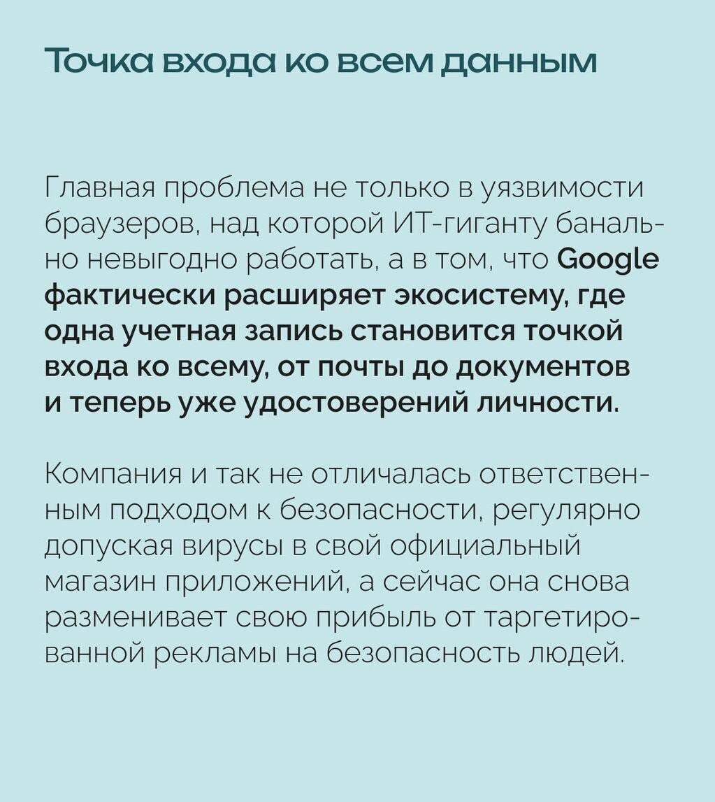 Google расширяет возможности автозаполнения в Chrome: браузер научился сохранять данные паспортов, водительских удостоверений и идентификаторы транспортных средств Компания объясняет, что это нужно для быстрого заполнения онлайн-форм, но эксперты по кибербезопасности предупреждают о рисках – концентрирование такой чувствительной информации в одном месте может быть опасным. По словам Google, новые данные работают в рамках уже существующей системы автозаполнения, которая хранит пароли, адреса и платежные реквизиты. При этом данные сохраняются только с согласия пользователя, шифруются и становятся доступными лишь после подтверждения, а контроль над информацией полностью остается у владельца аккаунта. Эксперты отмечают: расширение списка поддерживаемых документов повышает ценность аккаунта для злоумышленников. Паспортные и водительские данные раскрывают гораздо больше личной информации, а единый аккаунт Google часто используется для входа в сторонние сервисы, что увеличивает возможный
