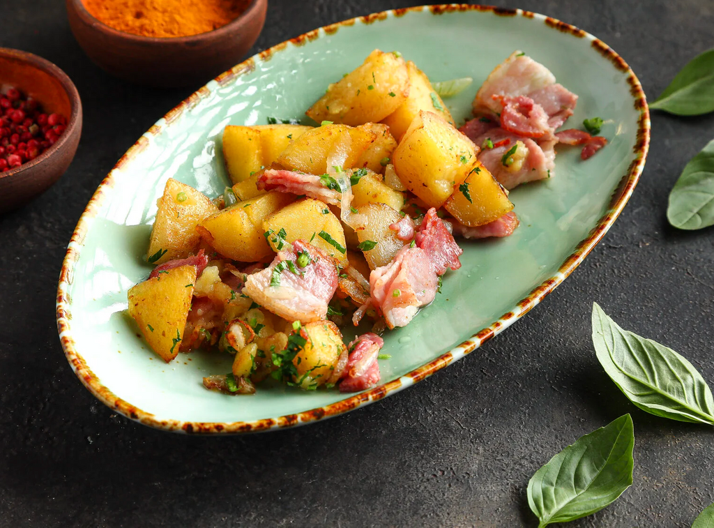 Картошка с беконом на сковороде: домашний рецепт с хрустящей корочкой