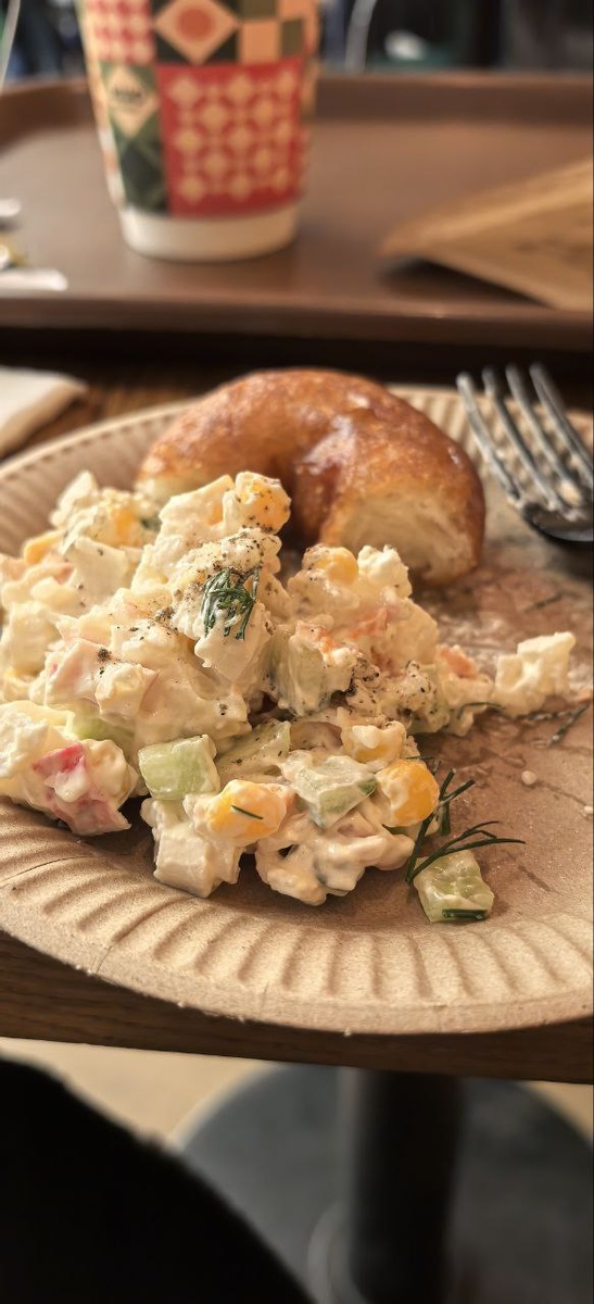 Мой "обед" в стиле "чего я хочу" иногда бывает такой. И это не гадость. Это крабовый салат и две свежайшие пышки (на фото уже остаток) в КиО. И когда человек такое ест ТОЛЬКО в случае, если именно этих текстур, вкусов, ощущений при глотании, ощущений после - и хочет: тогда такая еда не откладывается в жир, а только способствует красоте. Проверено нашим клубом.