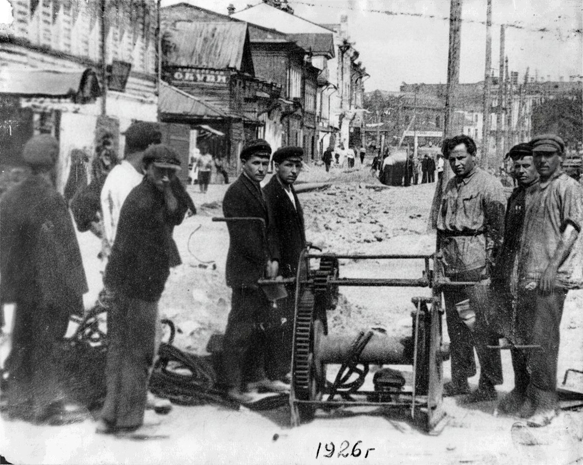 На снимке же 1926 года прокладка телефонной связи на Афанасьевской улице (современная ул. Марии Ульяновой) у перекрёстка с Козлёнской.